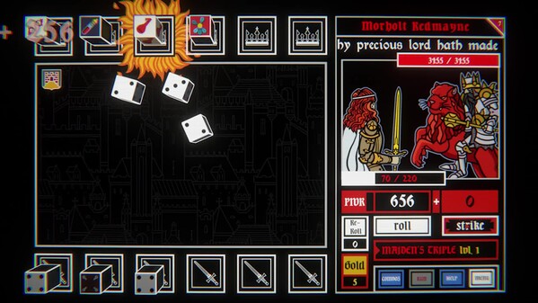这是一款 roguelike 骰子构筑游戏,你将化身为妖精林地归来的女王——格温妮薇儿捕猎反抗陷害亚瑟王的敌人,利用你的智慧策略以及运气释放强力攻击,击败敌人,并拯救出被施加魔法的亚瑟王!拯救陷入危机的卡美洛王国!